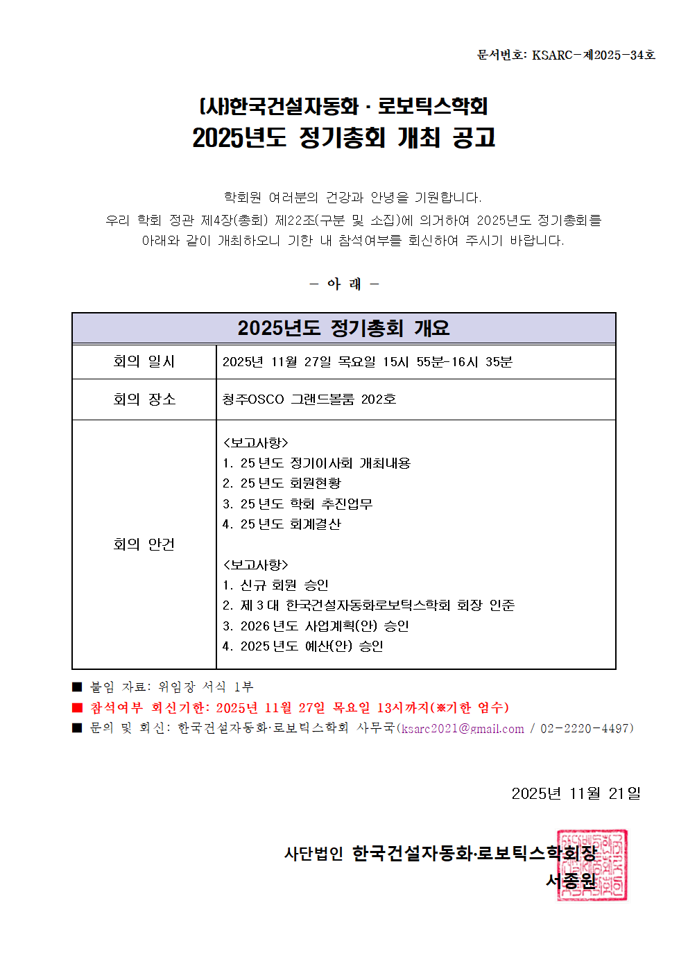 2025년도 정기총회 개최 공고